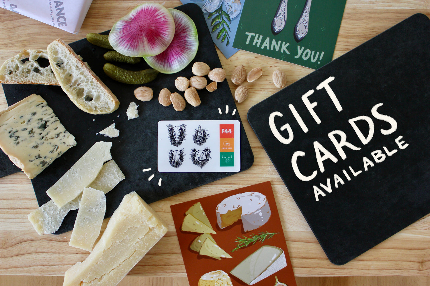 We have gift cards available for use at France 44 Cheese, France 44 Wine, St Paul Cheese & St Paul Meat Shop.